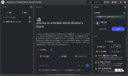 最近の生成AI技術は日本語入力でも凄いです。中でもNotebookLMの音声概要を聴いた時は感動すら覚えました。 NotebookLMの基本画面キャプチャ 主な使い方は数多あるAIチャットと同じですが、違いはソース(元になる資料)を自分で選べるという部分だと思いま…